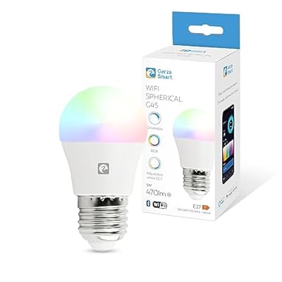 🇪🇸 Garza Smarthome - Bombilla LED Inteligente Wifi Esférica G45 E27 5W 40W de Equivalencia RGB+CCT Intensidad regulable Programable Control por Voz y App Alexa/Google Home Wifi 2 4 GHz